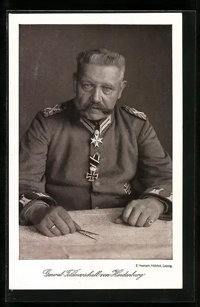 AK General-Feldmarschall Paul von Hindenburg in Uniform an einem Tisch