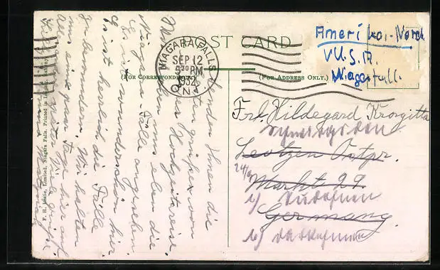gelaufen 1932, Briefmarke entfernt, leichte Bugspur rechts oben, guter Zustand