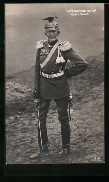 AK Generalfeldmarschall Graf Haeseler in Uniform auf dem Feld