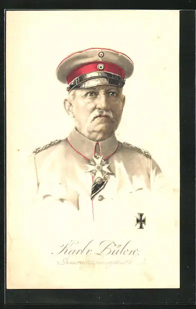 AK Generalfeldmarschall Karl v. Bülow in Uniform mit Schirmmütze, AK-Reklame