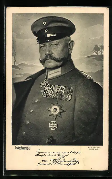 AK Generalfeldmarschall von Hindenburg in Uniform mit Orden und Mütze