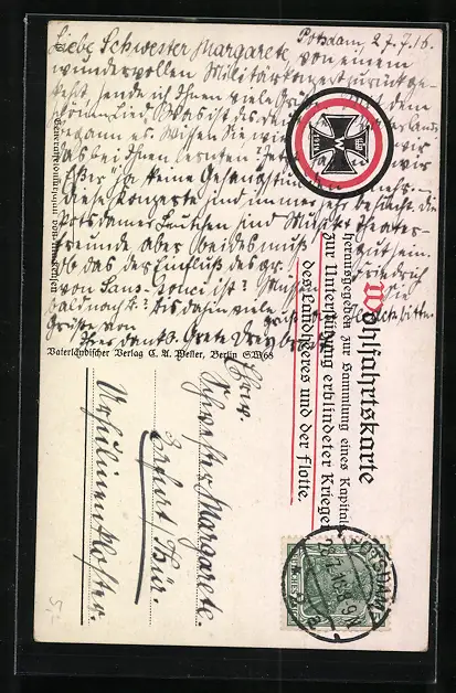 alte Ansichtskarte, gelaufen 1916, Stempelspur, guter Zustand