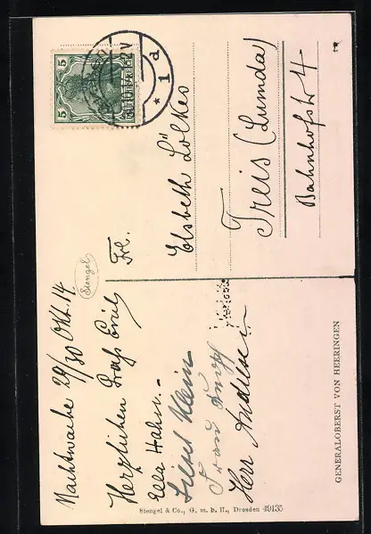 alte Ansichtskarte, gelaufen 1914, guter Zustand