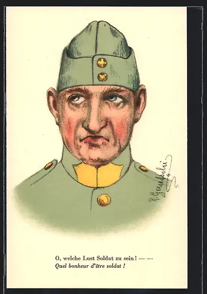 AK Genervter schweizer Soldat, O, welche Lust Soldat zu sein!