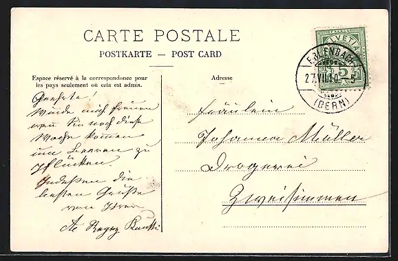 alte Ansichtskarte, gelaufen 1910, Eckknick unten li. u. oben re., guter Zustand