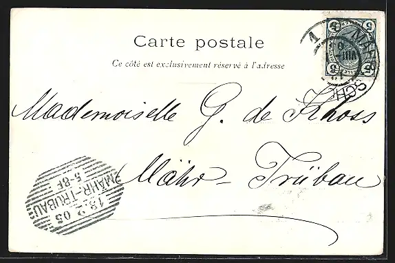 alte Ansichtskarte, gelaufen 1905, Stempelspur, guter Zustand