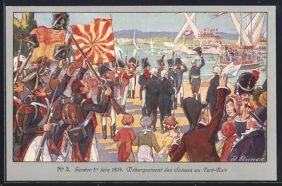 AK Geneve, Débarquement des Suisses au Port-Noir, 01.06.1814