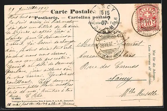alte Ansichtskarte, gelaufen 1907, Stempelspur, guter Zustand
