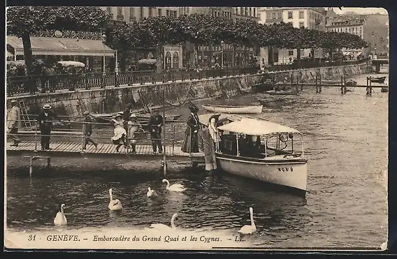 AK Genève, Embarcadère de Grand Quai et les Cygnes