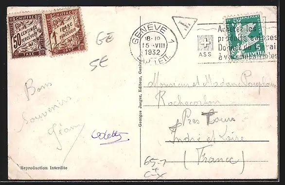 gelaufen 1932, Eckknicke li. oben und re. unten, guter Zustand