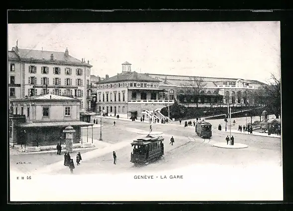 AK Genève, La Gare, Strassenbahn