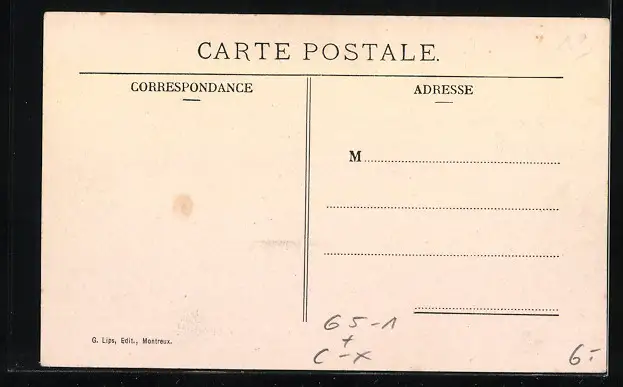 Personenbezogene Daten auf der Rückseite der Karte wurden durch blauen Textmarker unkenntlich gemacht. Die blauen Stellen sind auf die Vorderseite durchgeweicht und wirken sich negativ auf das Postkartenfoto aus
