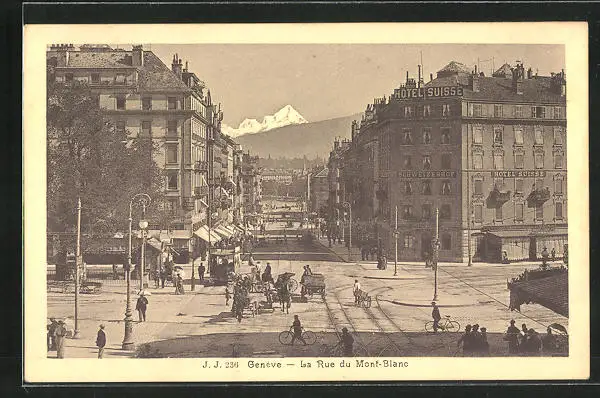 AK Genève, La Rue du Mont-Blanc, Strassenbahn