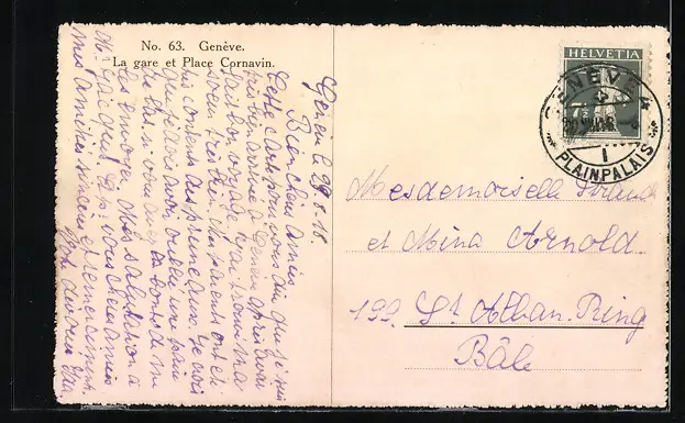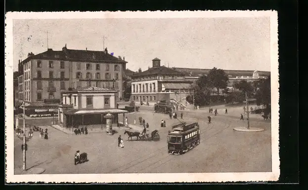 AK Genève, La gare et Place Cornavin, Strassenbahn