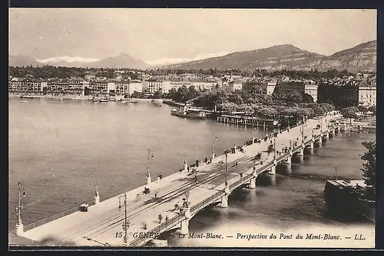 AK Genève, Le Mont-Blanc, Perspective du Pont Mont-Blanc
