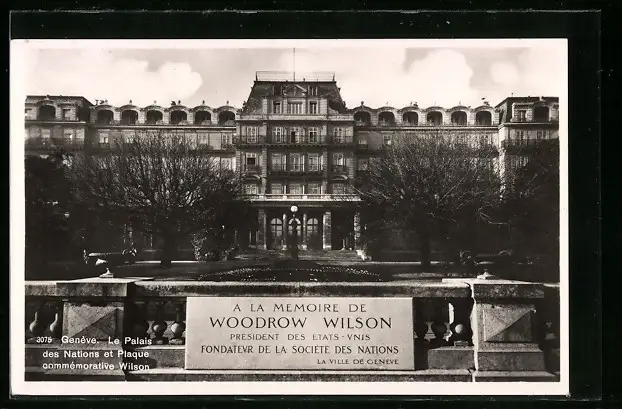 AK Genève, Le Palais des Nations et Plaque commemorative Wilson