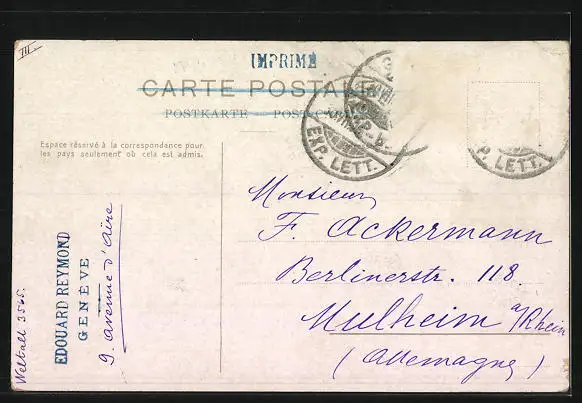 alte Ansichtskarte, gelaufen, Briefmarke entfernt, guter Zustand