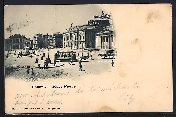 AK Genève, Place Neuve, Pferdebahn