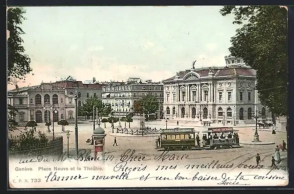 AK Genève, Place Neuve et le Théâtre, Strassenbahn