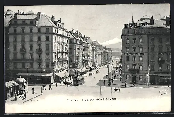 AK Genève, Rue du Mont-Blanc, Pferdebahn