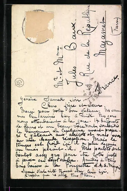alte Ansichtskarte, gelaufen, Briefmarke entfernt, rückseitig Oberflächenschaden, Bugspur re. unten, guter Zustand