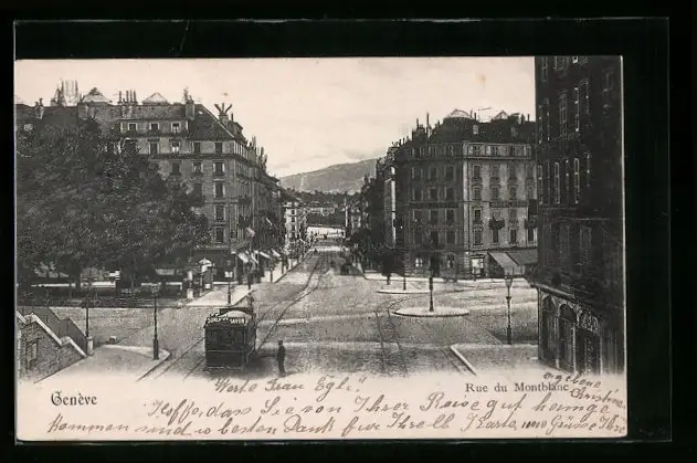 AK Genève, Rue du Montblanc, Strassenbahn