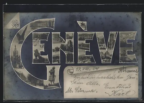 AK Genève, Stadtimpressionen im Schriftzug Genève