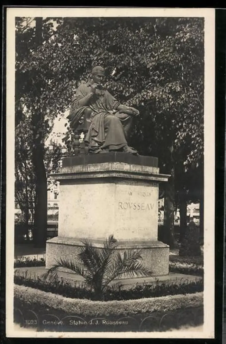 AK Genève, Statue J. J. Rousseau