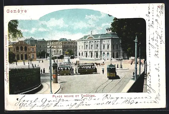 AK Geneve, Strassenbahn am Theater auf dem Place Neuve