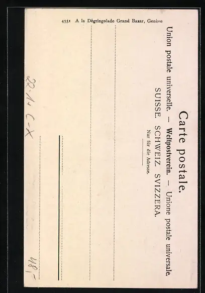 Personenbezogene Daten auf der Rückseite der Karte wurden durch blauen Textmarker unkenntlich gemacht. Die blauen Stellen sind auf die Vorderseite durchgeweicht und wirken sich negativ auf das Postkartenfoto aus