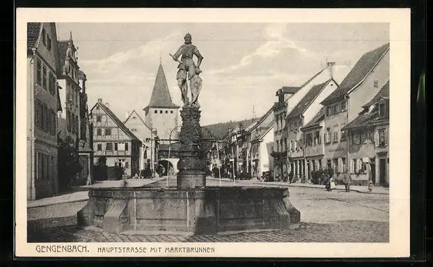 AK Gengenbach, Hauptstrasse mit Marktbrunnen