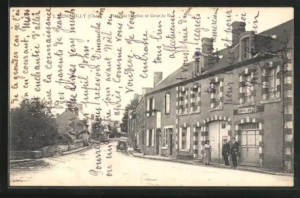 AK Genouilly, Place de l`Eglise et Grande Rue
