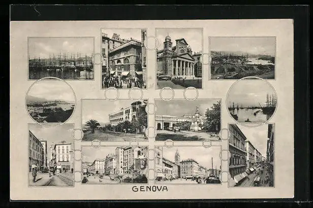 AK Genova, Hafenpartie mit Schiffen, Strassenpartie