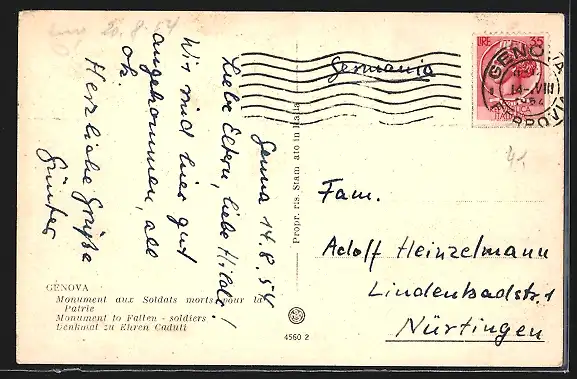 gelaufen 1954, Eckknicke li. oben u. re., Stempelspur, guter Zustand