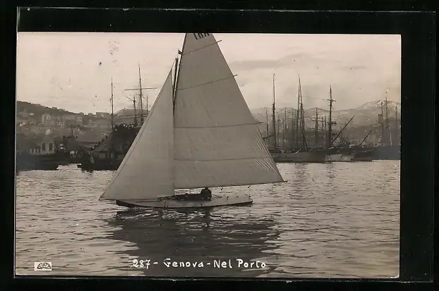 AK Genova, Nel Porto, Segelschiff vor dem Hafen