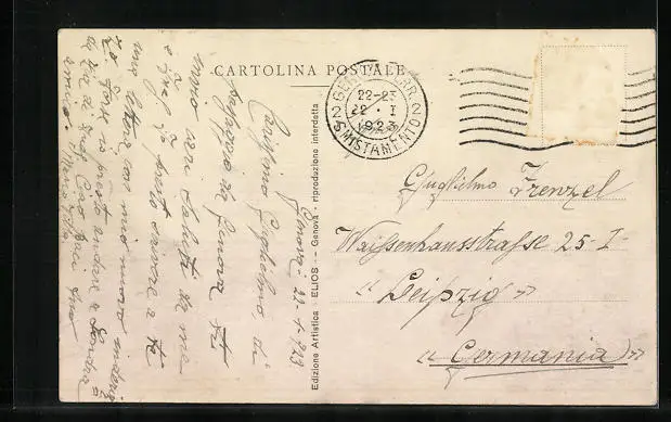 gelaufen 1923, Briefmarke entfernt, guter Zustand