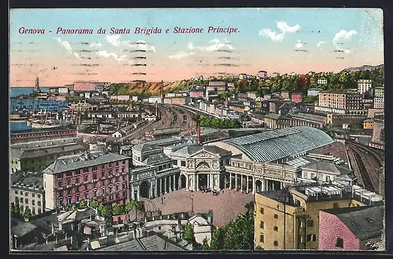 AK Genova, Panorama da Santa Brigade e Stazione Principe