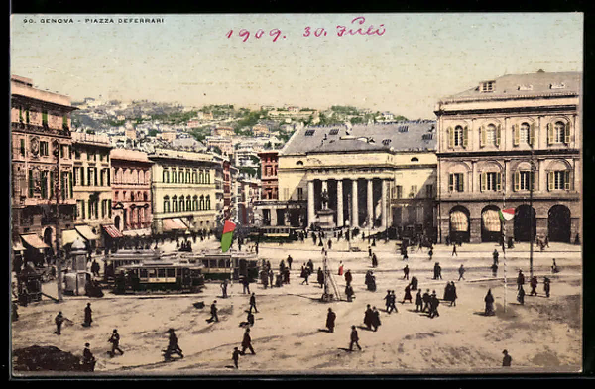 AK Genova, Piazza Deferrari, Strassenbahn