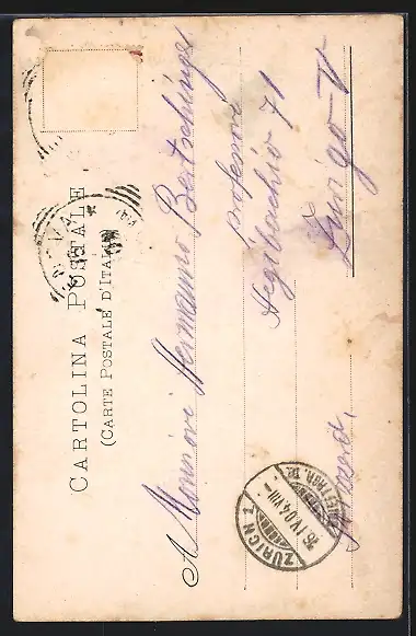 alte Ansichtskarte, gelaufen 1904, Briefmarke entfernt, rückseitig Oberflächenschaden, guter Zustand