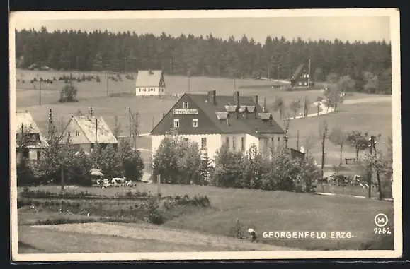 AK Georgenfeld i. Erzgeb., Teilansicht mit Gasthaus Grenzsteinhof