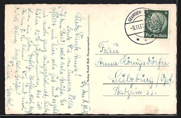 alte Ansichtskarte, gelaufen 1937, guter Zustand