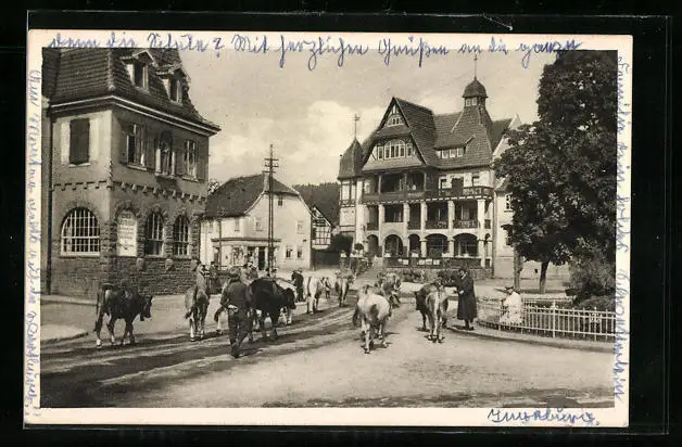 AK Georgenthal i. Thür., auf dem St. Georgenplatz mit einer Kuhherde