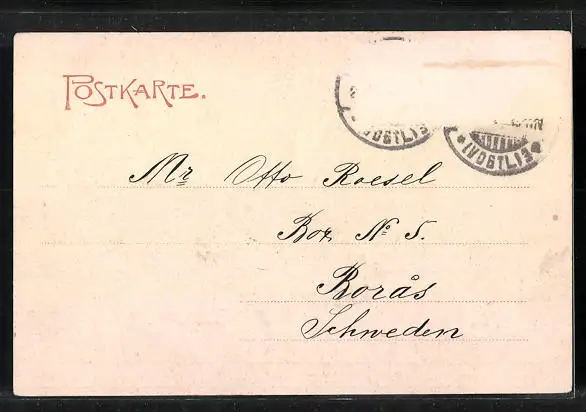 alte Ansichtskarte, gelaufen, Briefmarke entfernt, rückseitig Oberflächenschaden, guter Zustand