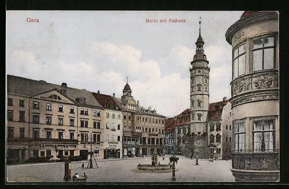 AK Gera, Markt mit Rathaus