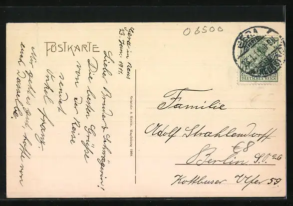 alte Ansichtskarte, gelaufen 1911, Stempelspur, Eckknick oben rechts, guter Zustand
