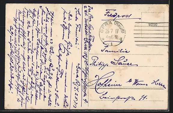 alte Ansichtskarte, gelaufen 1917, Eckknick oben re., guter Zustand