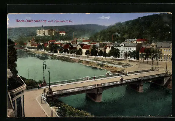 AK Gera - Untermhaus, Partie an der Elisenbrücke, Blick zur Stadt