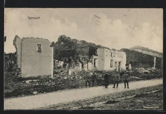 AK Gercourt, vom Krieg zerstörte Häuser
