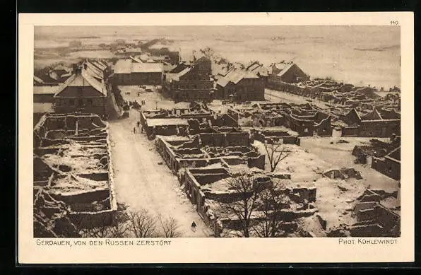 AK Gerdauen, Ortsansicht mit Ruinen aus der Vogelschau