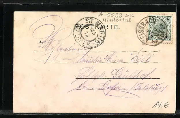 alte Ansichtskarte, gelaufen 1900, guter Zustand